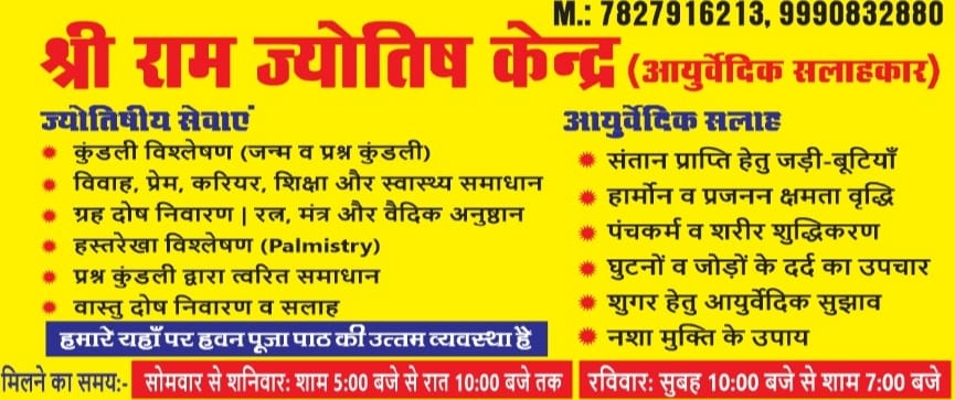 With many years of experience in the field of astrology, Acharya Sunil Pandit Ji provides accurate horoscope analysis and practical remedies for various aspects of life such as marriage, career, business, health, and family matters. The main belief of Shri Ram Jyotish Kendra is that the sacred knowledge of Vedic astrology can bring clarity, peace, and positive direction in human life.